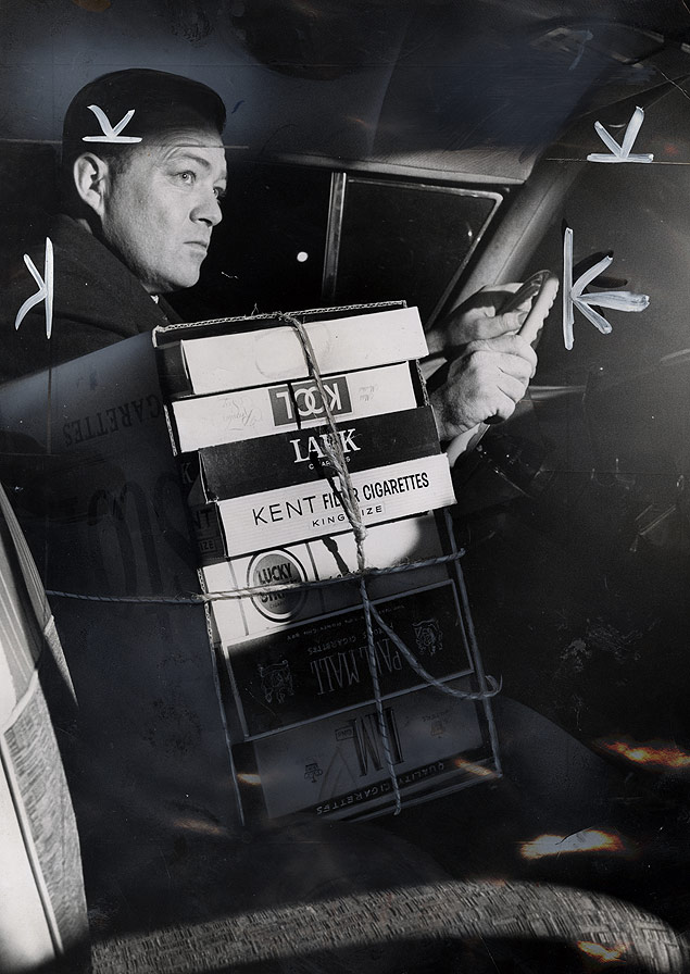 New York Journal-American reporter Jim Connolly practices methods of illegally smuggling cigarettes into New York after the state enacts a new tax on cigarettes.